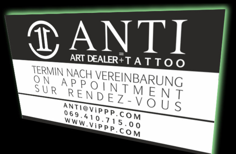 Vor mehr als 10 Jahren offiziell eröffnet, ist ANTI eine Mischung aus Tattoo-Studio und Atelier für Gestaltung von Motiven.